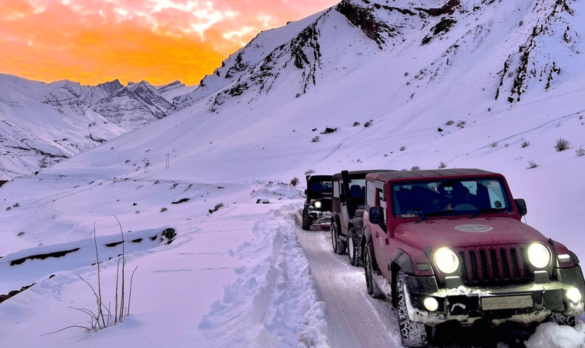 Start early from Pangong Lake to enjoy the sunrise over the lake’s blue waters. Take the Chushul route, which is less traveled and offers a rugged, adventurous ride. Pass